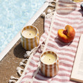 Plonge dans une ambiance estivale toute l’année avec la collection Cabana. Des bougies parfumées au design rayé chic et coloré, qui évoquent les plus belles destinations ensoleillées. Chaque bougie est pensée comme une escale déco et olfactive, pour transformer ton intérieur en refuge chaleureux et vibrant.